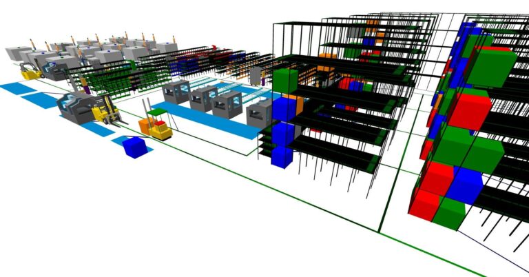 Im zweiten Teil dieser Arbeit wird der Materialfluss eines Automobil¬zulieferunternehmens simuliert und visualisiert. Die Visualisierung veranschaulicht die Abläufe im Unternehmen und erleichtert das Verständnis von Zusammenhängen. Mit Hilfe der Simulationsergebnisse können Potentiale zur Effizienzsteigerung aufgezeigt werden. Die Simulationsergebnisse dienen als Grundlage für wesentliche Entscheidungen über Anordnung, Dimensionierung und Ausstattung der Lager- und Produktionsbereiche.