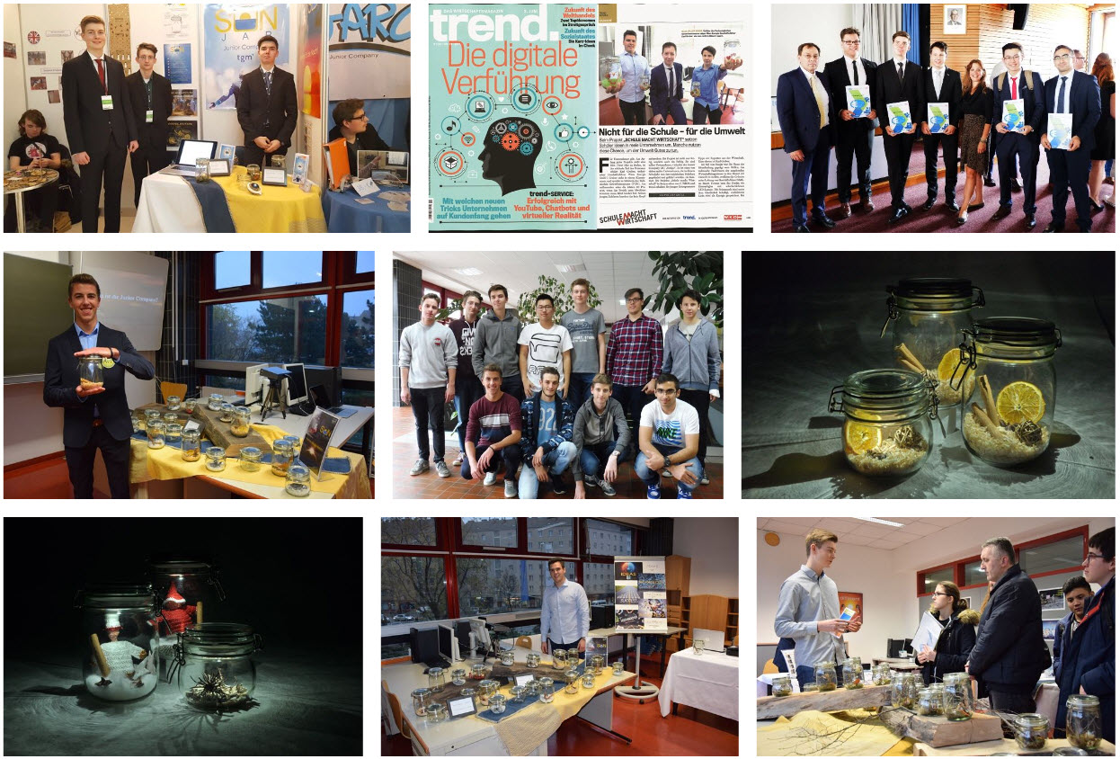SunJar, die erste Junior Company wurde im Schuljahr 2016/2017 von 11 Schülern der 4AHWIM und der 4BHWIM gegründet. SunJar produziert solarbetriebene LED-Lampen in Einmachgläsern, sozusagen „ Sonne für die Nacht“. Es werden Lampen mit modernster High-Tech-Solartechnologie in nostalgischen Einmachgläsern erzeugt und – je nach Modell – um 12 € bis 20 € verkauft. Die LED-Leuchte wird dabei tagsüber über Solarzellen im Deckel durch das Sonnenlicht aufgeladen und spendet in der Dunkelheit für mehrere Stunden Licht. SunJar eignet sich ideal als Gartenlampe oder zur Dekoration und ist auch ein perfektes Geschenk für diverse Anlässe wie beispielsweise Weihnachten oder Valentinstag.