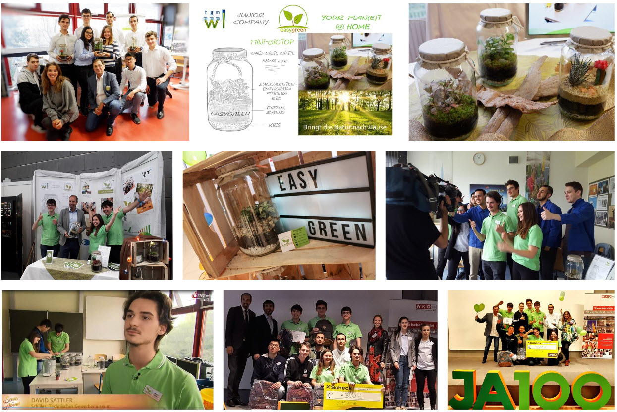 Die Schülerinnen und Schüler wollen aber nicht nur produzieren und verkaufen, sie wollen sich auch mit anderen Junior Companies messen und nehmen am Junior Austria Wettbewerb teil. Es wird kein Aufwand gescheut: ein Messestand wird dekoriert, eine Bühnenshow einstudiert und für Juryinterviews geprobt. Es zahlt sich aus, denn im Mai 2019 gewinnt easygreen den Landeswettbewerb als beste Junior Company Wiens. Neben dem tollen wirtschaftlichen Erfolg (siehe Geschäftsbericht) sicherlich der Höhepunkt eines spannenden, erfolgreichen, lehrreichen und vor allem unterhaltsamen Geschäftsjahres. Ein nachhaltiges Produkt, ein nachhaltiger Unterricht und eine Bestätigung der an unserer Schule gelebten Idee von „Entrepreneurship Education in Engineering“.