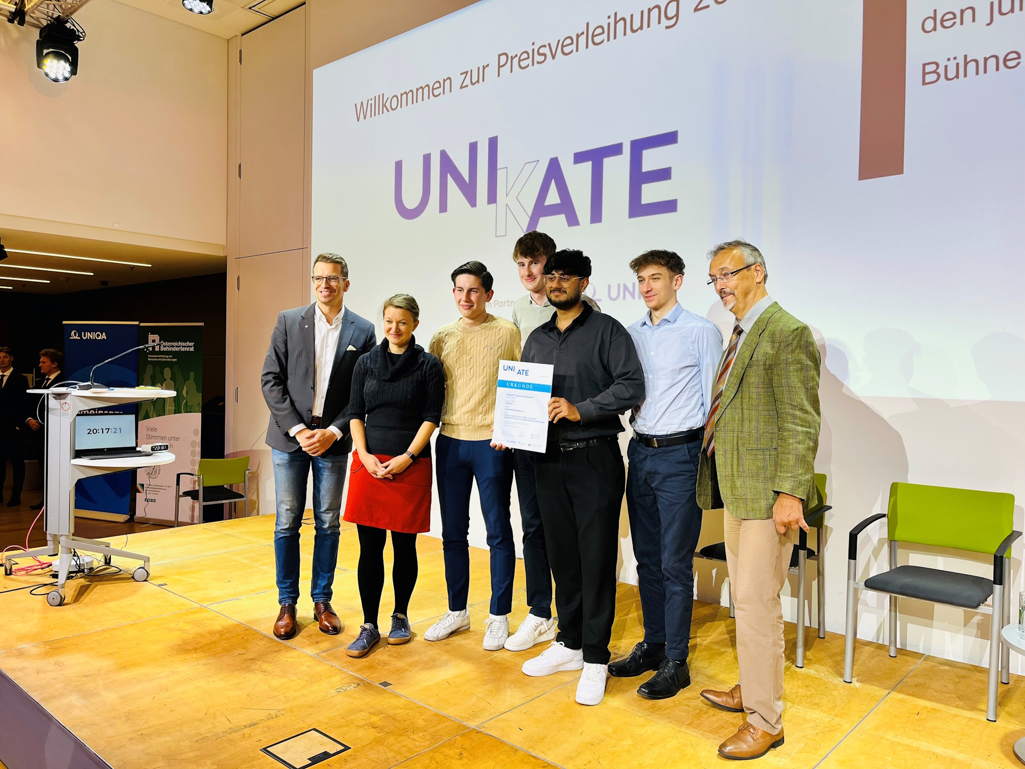 Am 17. 10. 2024 wurden 6 Schüler der Abteilung Wirtschaftsingenieure im Veranstaltungszentrum Catamaran beim Ideenwettbewerb UNIKATE für die erfolgreiche Verwirklichung eines mobilen Arbeitsplatzes für Personen mit Seheinschränkungen geehrt. Es ging darum, ein Projekt umzusetzen, das es Menschen mit Behinderung erleichtert, ihr Leben selbstbestimmt zu meistern.