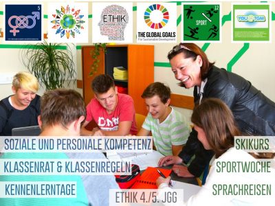 • 12-16 Stunden herkömmlicher Unterricht (inkl. Sport und Religion oder Ethik).