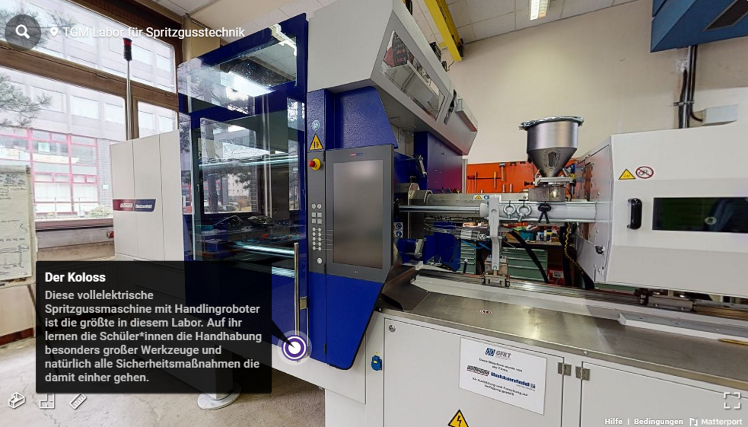 In der vierten Klasse setzen die Schüler*innen das erste Mal einen Fuß in dieses Labor. Einen Halbtag lang werden verschiedene Maschinen und Materialien zu bedienen gelernt. Künstliche Intelligenz unterstützt dabei die Schülerinnen und Schüler beim richtigen Einstellen der Spritzgussmaschine, auch während der Diplomarbeit. Die Digitalisierung unserer Arbeitswelt kann hier direkt an den Maschinen erlebt werden. So kommen unsere Absolvent*innen mit Industrie 4.0 in Kontakt und sind so optimal für das Berufsleben vorbereitet.